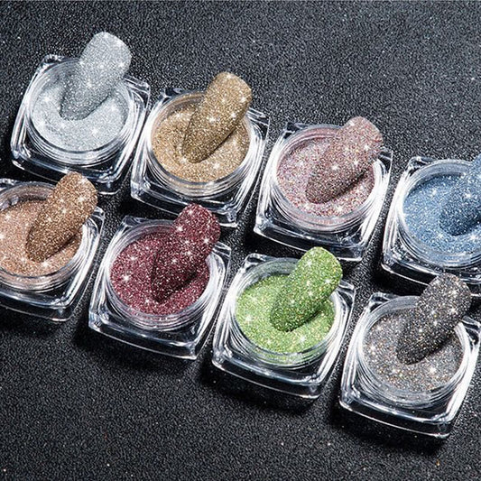 8 Pcs Diamond Nail Glitter Set Reflective Nail Powder Set