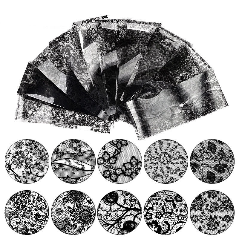 10 Rolls Lace Nail Art Foil Transfer Stickers Flower Foil Transfers Decals