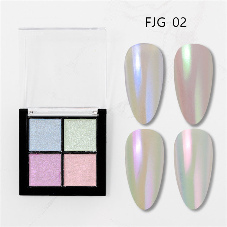 4 Color Soild Mirror Powder Palette Set for Nail Art Laser Aurora Glitter Powder Pigment