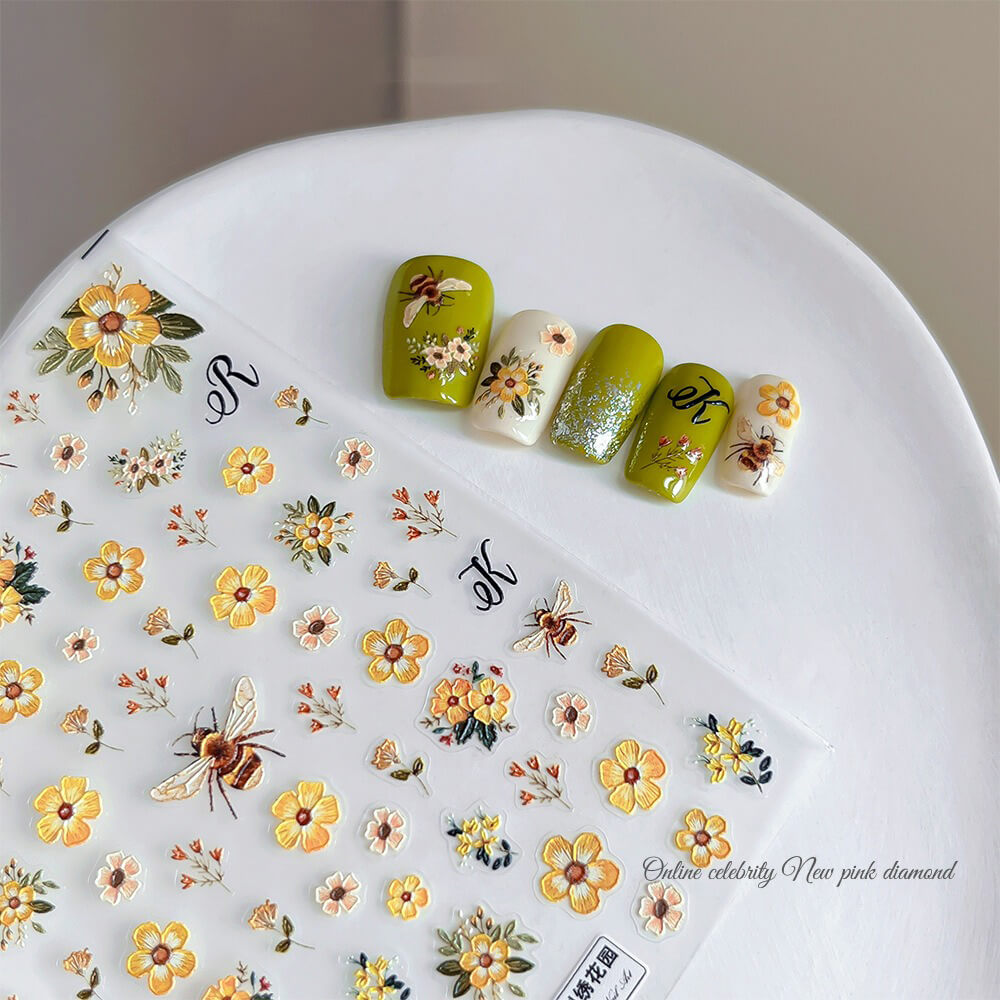 5D Flower Bee Nail Art Sticker Decals