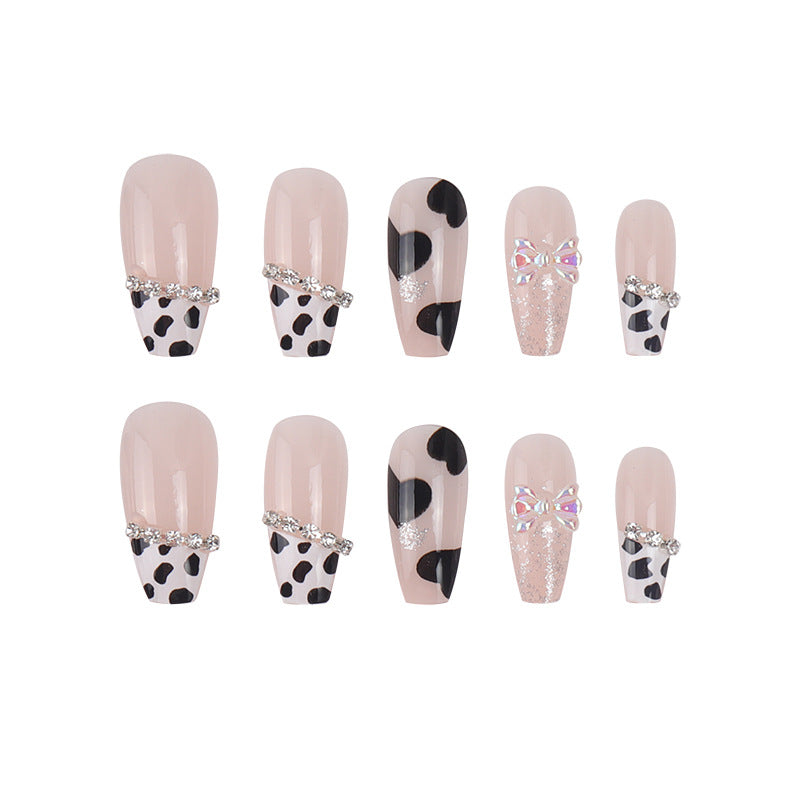 #44 Cute Cow Extra Length Blaaerina Shape Pink Press on Nail