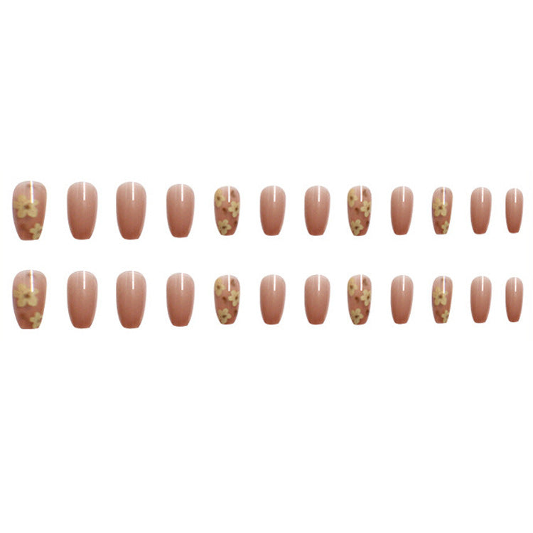 #77 Medium Length Ballerina Shape Flower Press on Nail