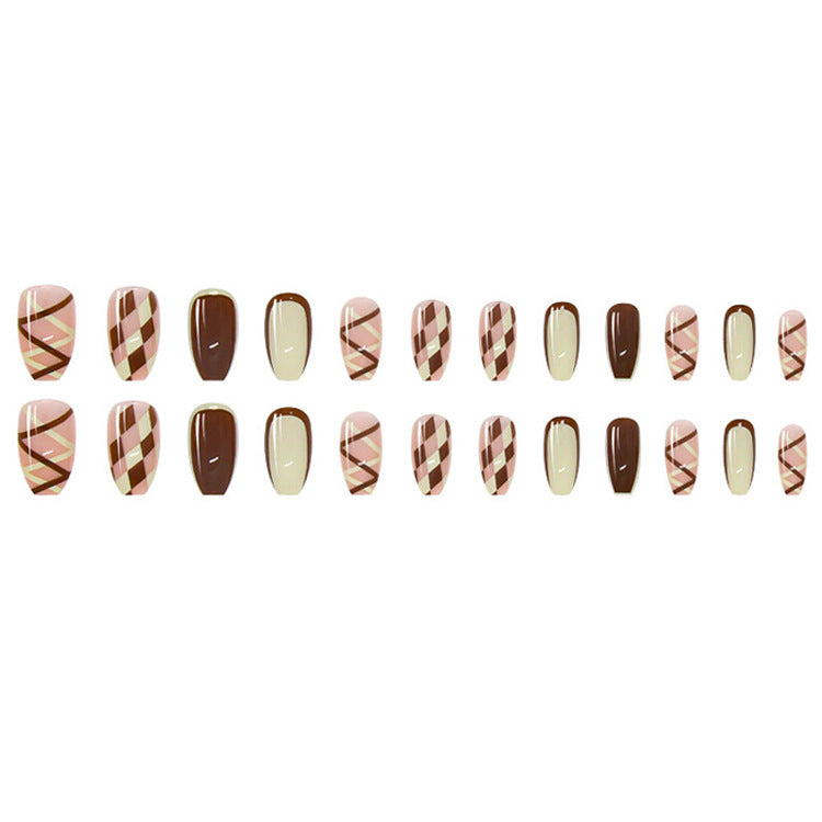 #132 Medium Length Ballerina Shape Brown Press on Nail