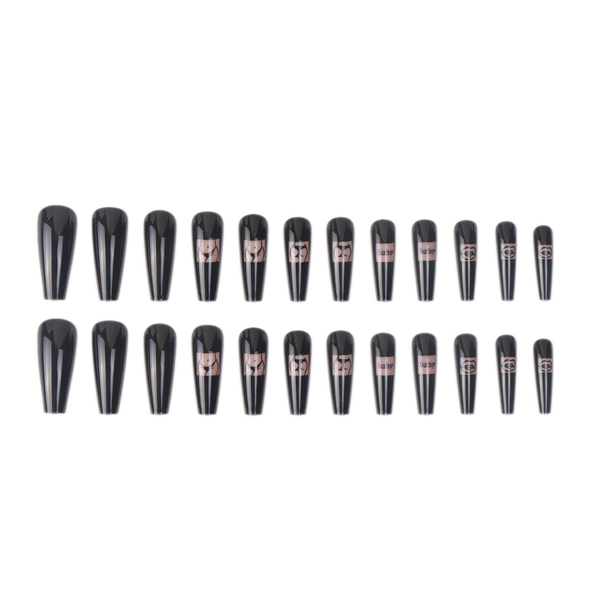Black Press On Nail Gel Nail Kit Long Length Coffin Nail Art Tips
