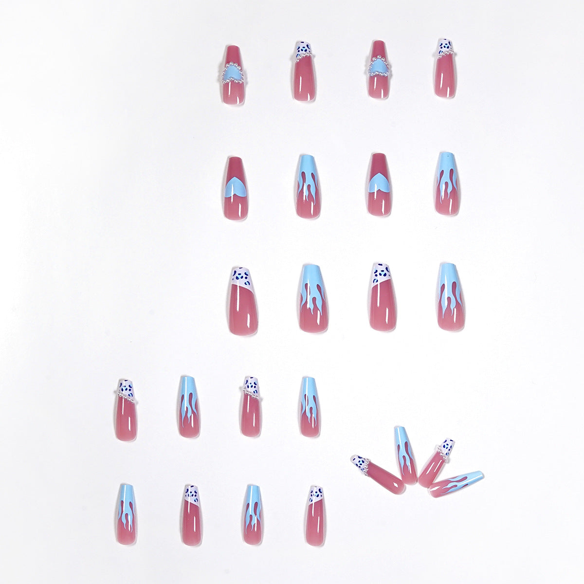 #73 Blue Flame Cute Extra Length Cow Heart Press on Nail Fake Nails