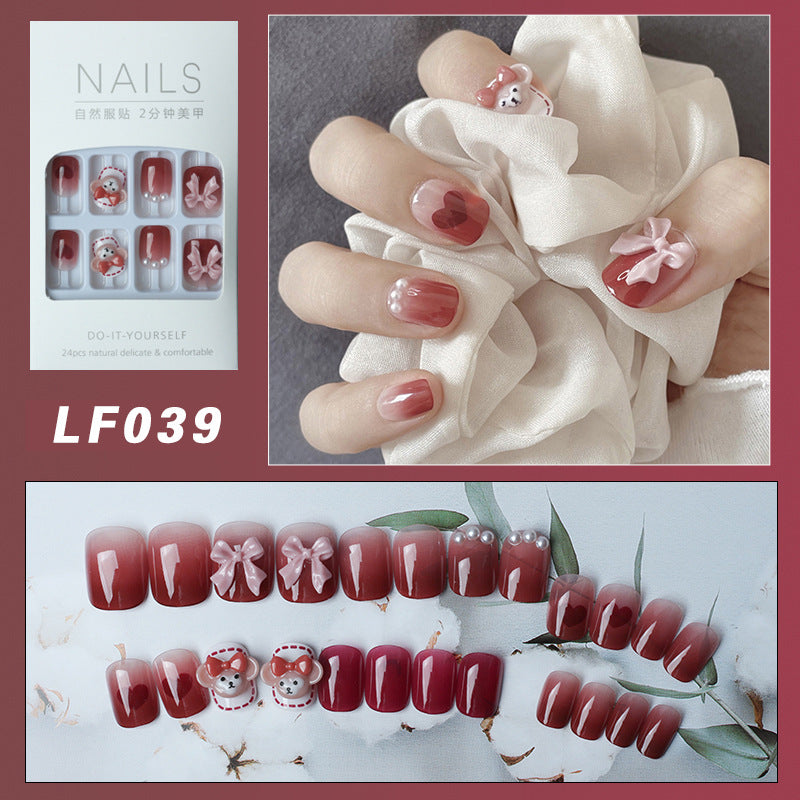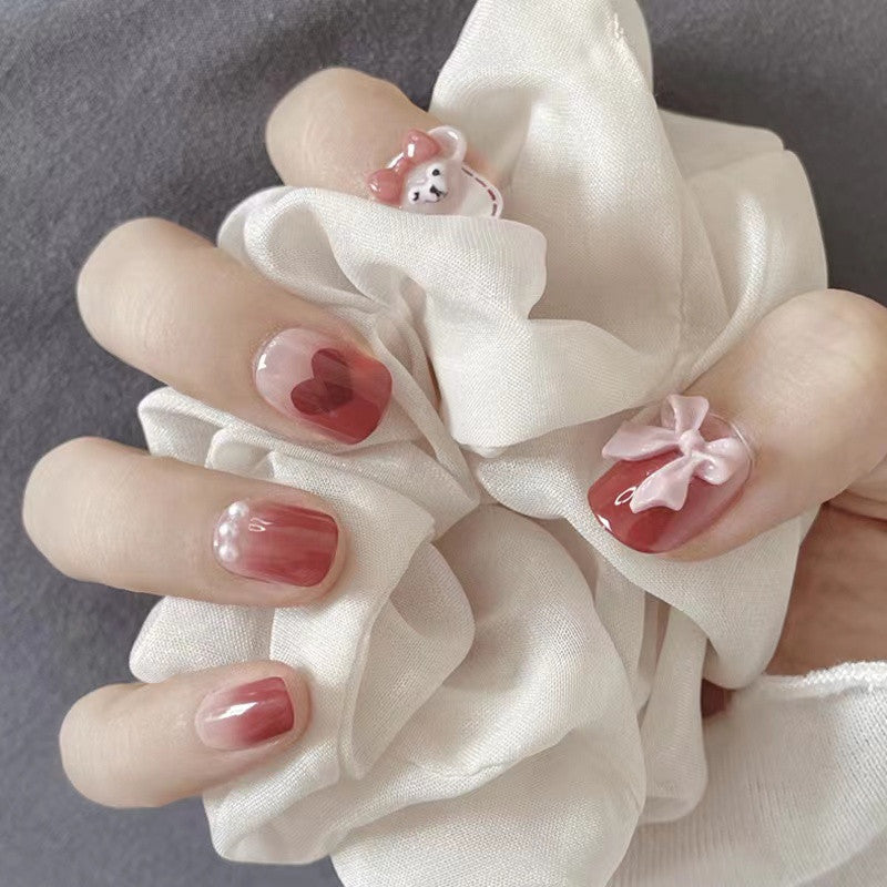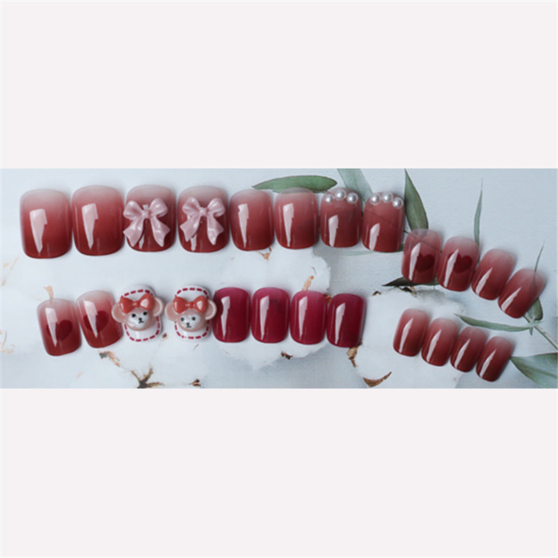#141 Cute Cartoon Press on Nail Bowknot Gradient Pink Fake Nails