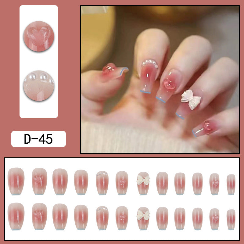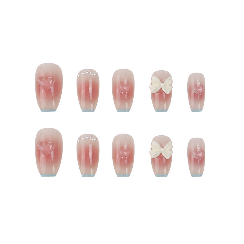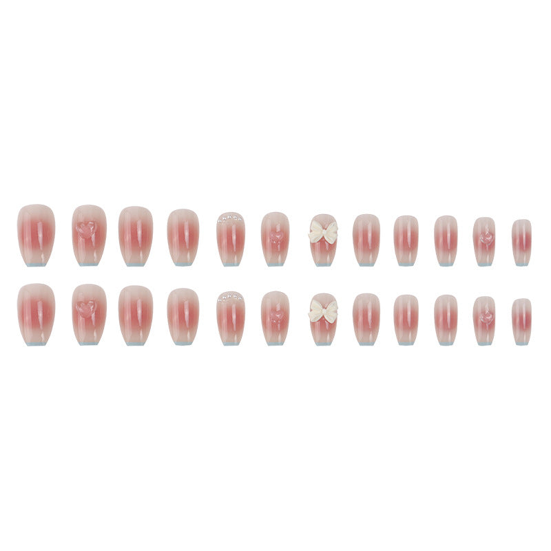 #26 Medium Length Pink Bloomming Ballerina Shape Bowknot Fake Nails