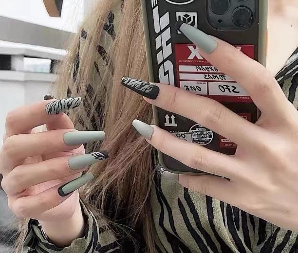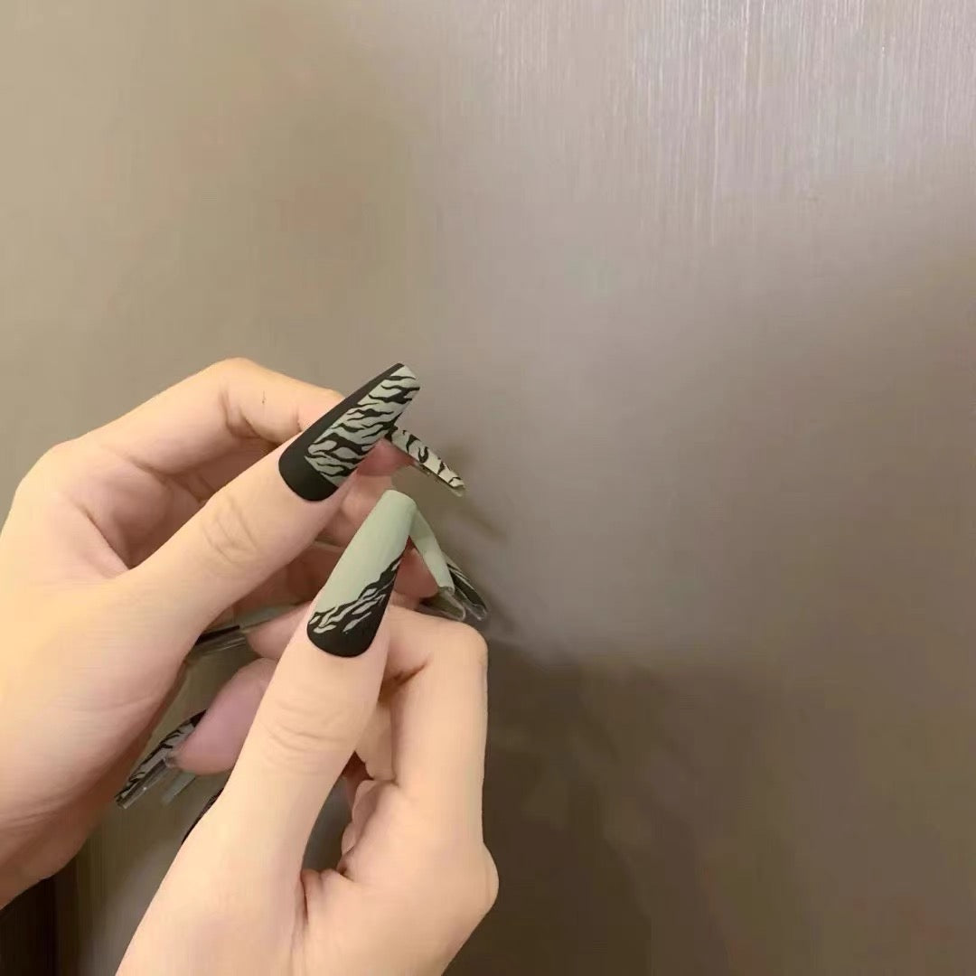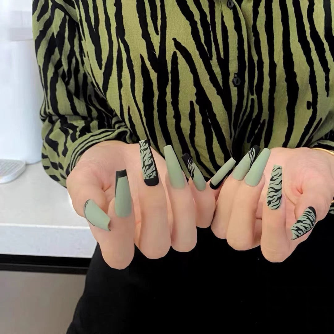 #60 Extra Length Coffin Shape Green Press on Nail Fake Nail