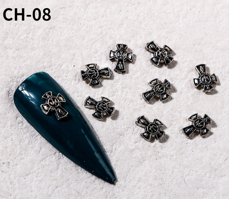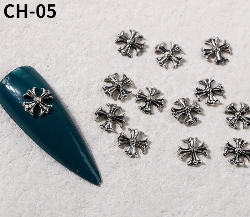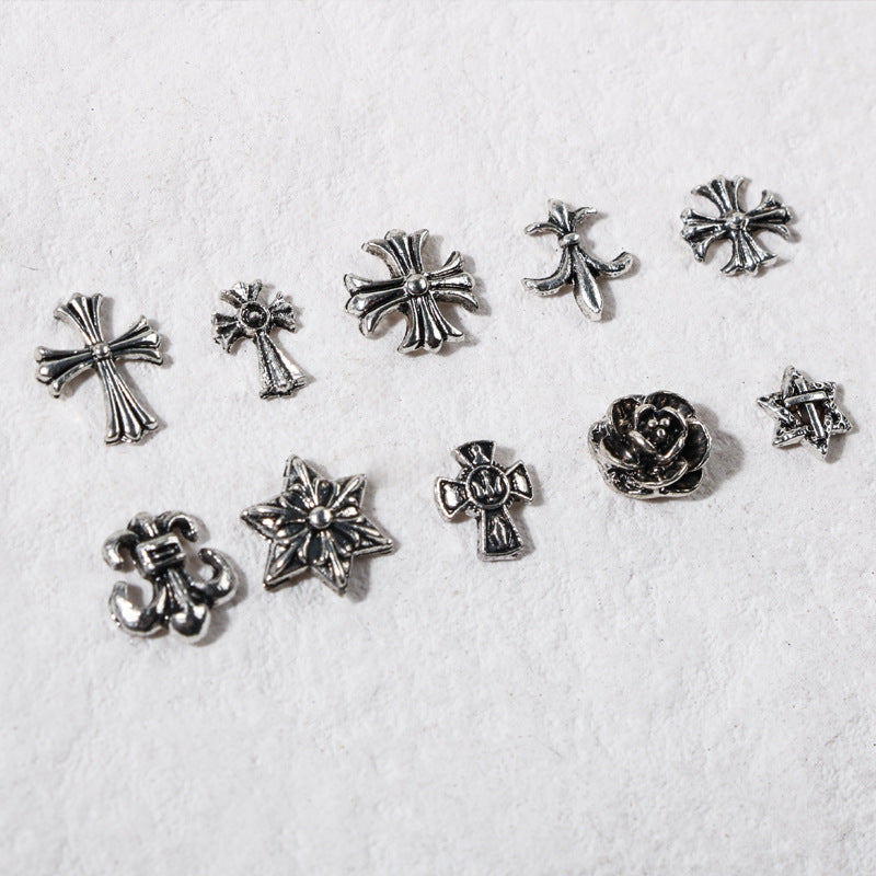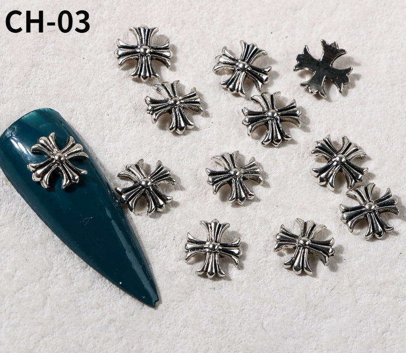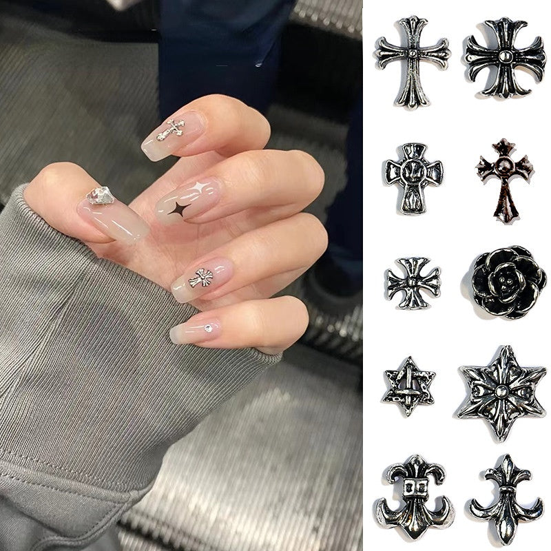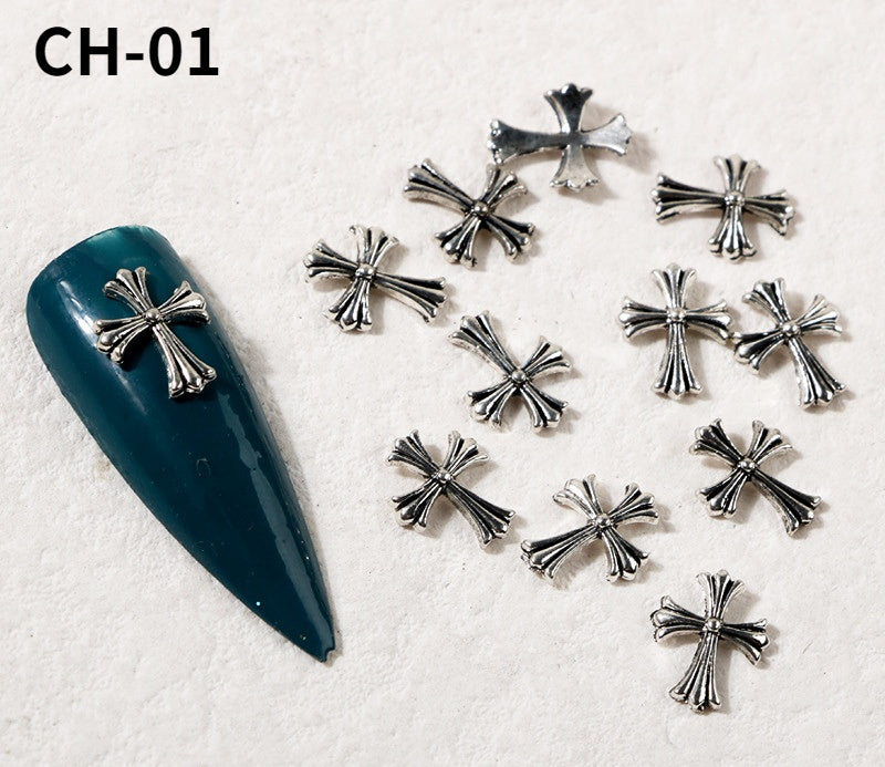 Punk Cross Nail Art Charms 3D Chrome Heart Vintage Jewel