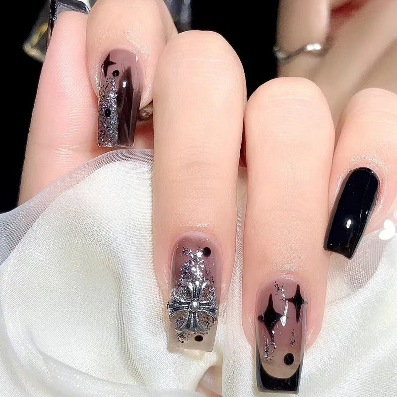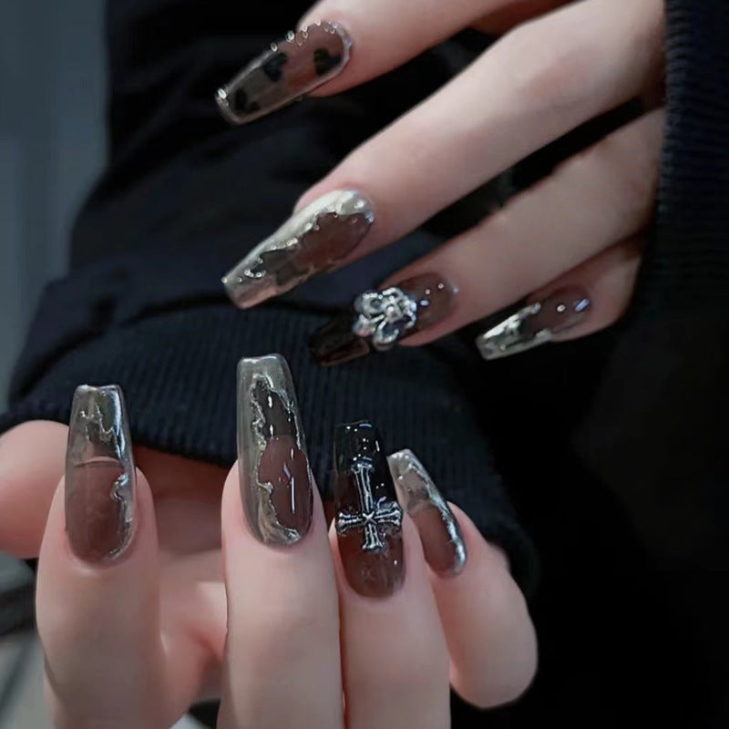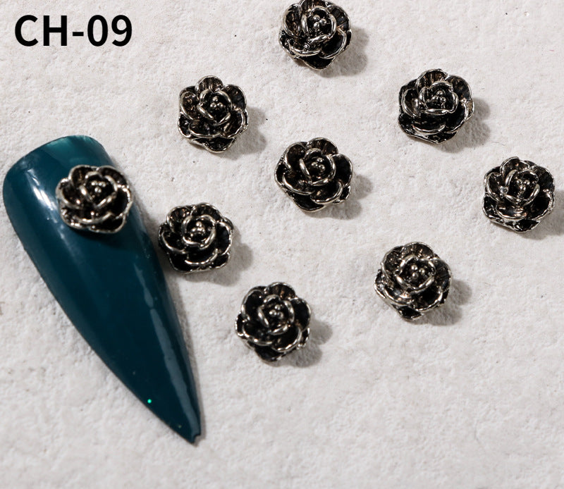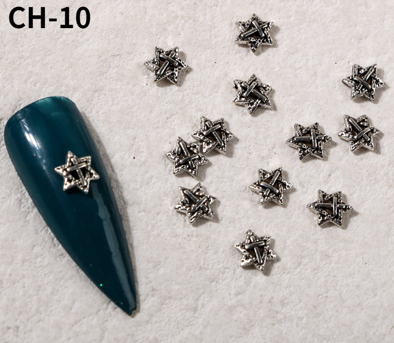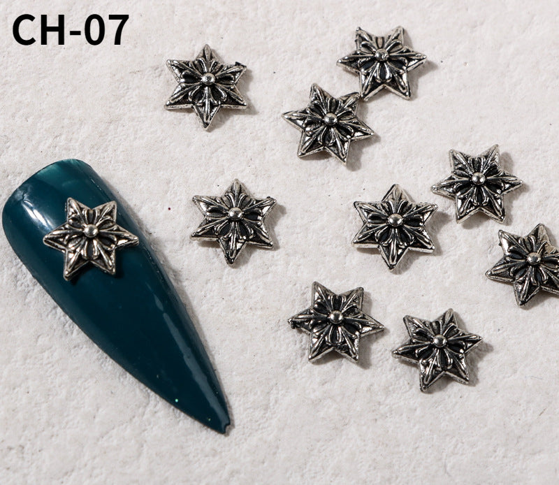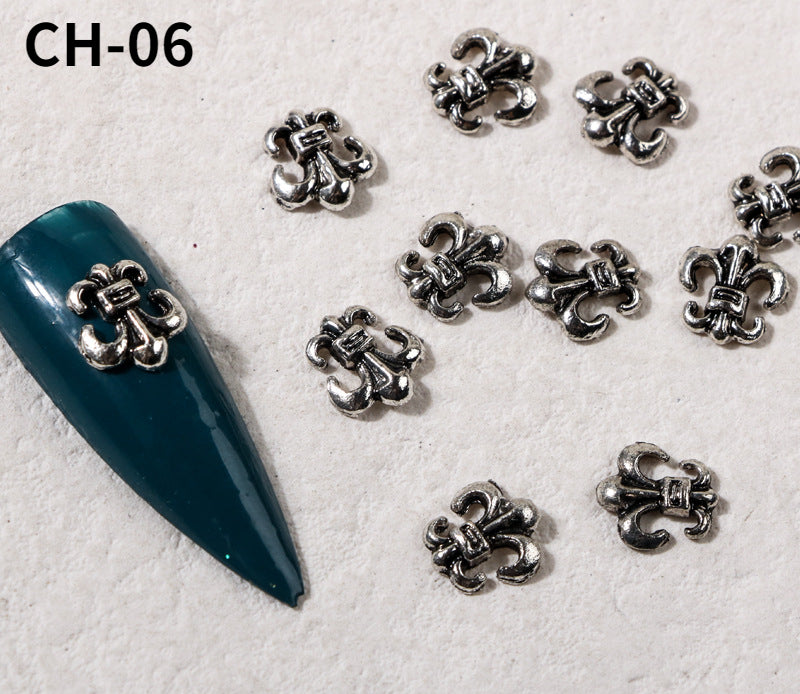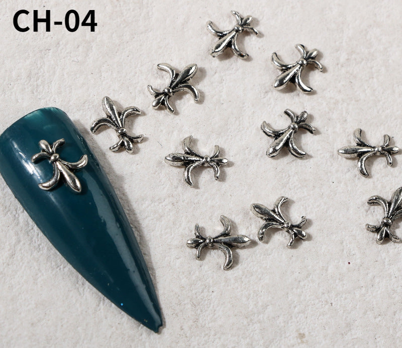 Punk Cross Nail Art Charms 3D Chrome Heart Vintage Jewel