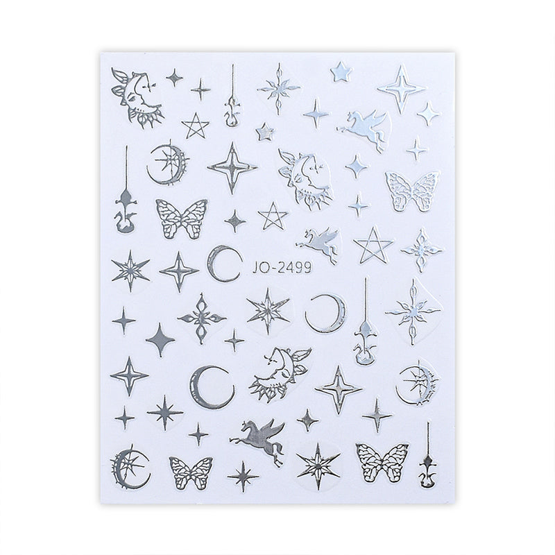 Sliver Y2K Nail Art Stickers Bohemia Butterfly Moon Flame Nail DIY Decals