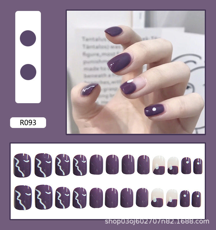 #120 Short Length Squoval Shape Purple Cute Fake Nail