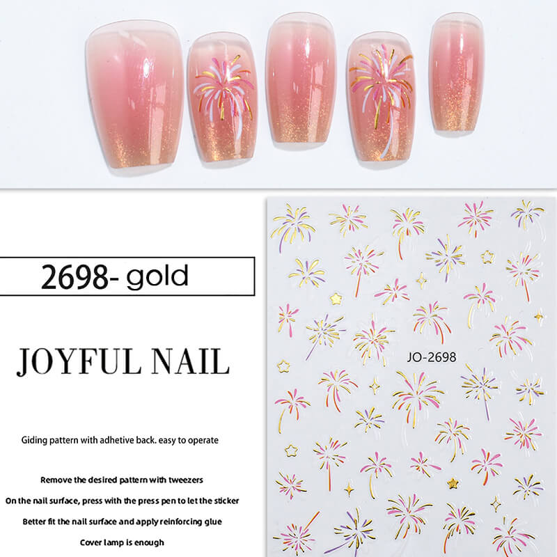 2025 New Fireworks Glod Sliver Nail Art Sitckers