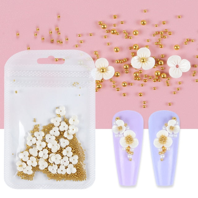 Nail Decoration Accessories: Gold beads, silver beads